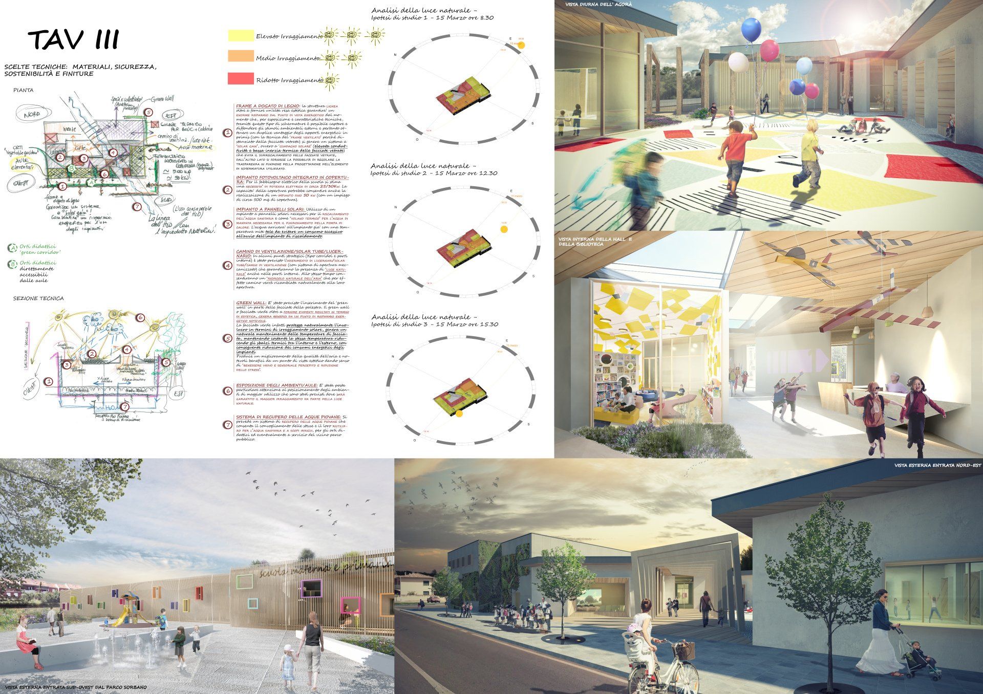 Per raggiungere tali obbiettivi è stato necessario pensare di progettare un ambiente su misura per gli alunni, con schema distributivo e funzionalità consoni alla logica pedagogica. In merito alla polifunzionalità degli spazi e alla possibilità di utilizzo da parte della collettività ci preme evidenziare la flessibilità di utilizzo degli ambienti progettati, la loro polifunzionalità, aspetto di fondamentale importanza per raggiungere gli obiettivi richiesti.